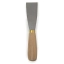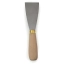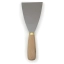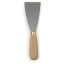 Malerspachtel mit biegsamen, geschliffenem Stahlblatt und ovalem Buchenholzheft, durchgehend vernietet. Einfache Ausführung.